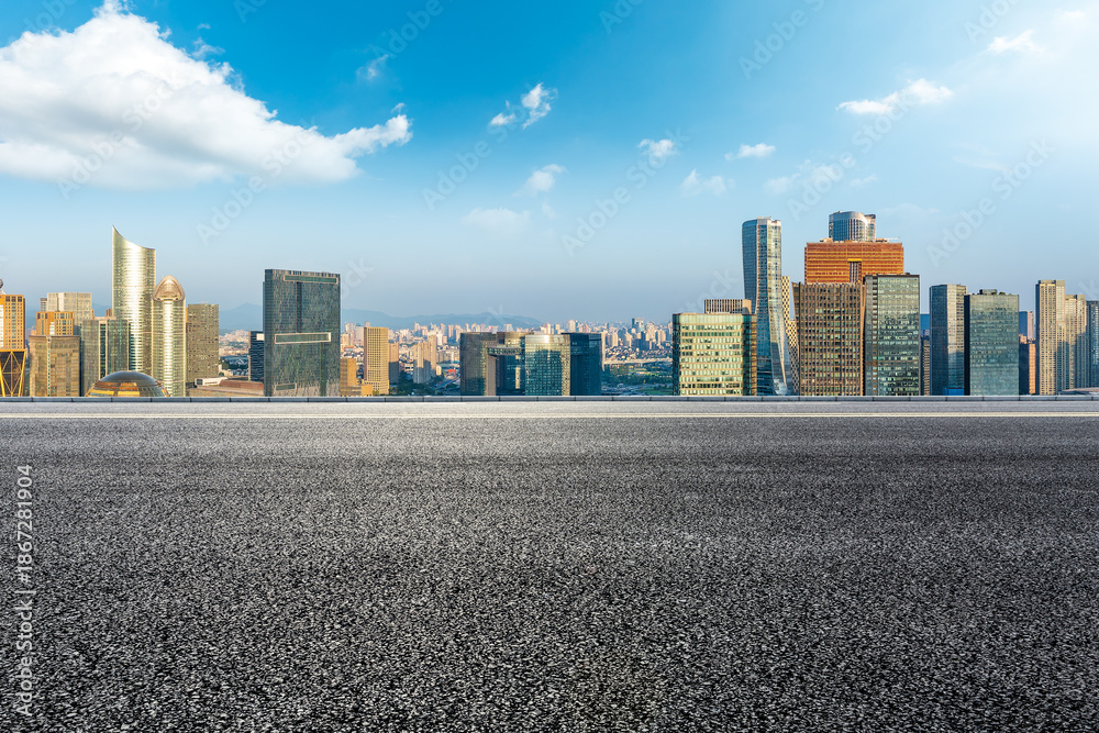 Obraz Pejzaże - Empty asphalt road and city skyline with modern buildings in Hangzhou #1867281904