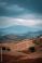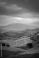 • Terraced farmland on rolling hills under a moody, stormy sky with distant blue mountains. Concept Terraced Farmland, Stormy Sky, Rolling Hills, Distant Blue Mountains, Landscape Photography