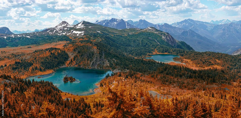 Obraz Pejzaże - Sunshine Meadows lakes in Banff mountains during bright summer day with clear skies #1872170425