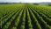 • Rows of green macadamia trees stretch into distance on sunny day. Verdant farm landscape shows neat cultivation pattern. Blue sky above green cultivated land.