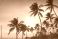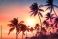 • Golden Colorful Sunset Silhouetting Tropical Palm Trees in a Serene Nature Setting