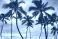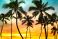 Obraz Pejzaże - Golden Colorful Sunset Silhouetting Tropical Palm Trees in a Serene Nature Setting #1874743746