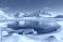 • Frozen lake reflecting snow-capped mountains under blue sky