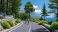 Obraz Pejzaże - Two cyclists riding road through Mallorca mountains #1889636314