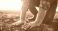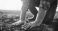 • Male hands touching soil on the field. Expert hand of farmer checking soil health before growth.