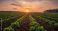 • Early morning sunrise lighting over potato fields in agricultural plots