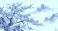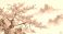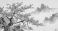 • Ink brush painting of sakura trees with a mist covered mountain background
