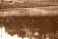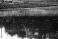 • Calm surreal pond water in nature, black and white background.