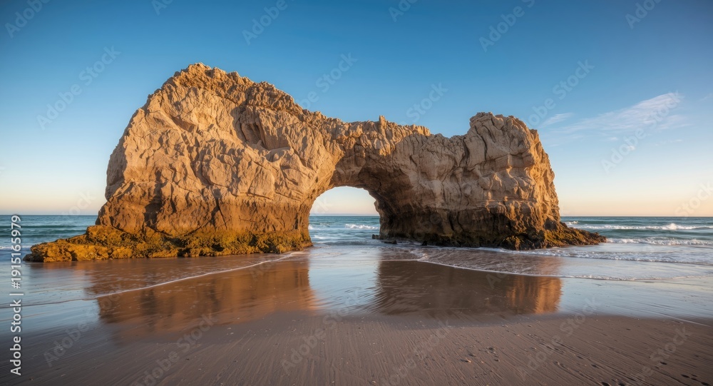 Obraz Pejzaże - Natural stone formation with hole on sandy beach #1915165979