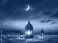 • Ramadan Kareem - Eid Mubarak - Arabic Lanterns Glowing In The Desert At Night With Crescent Moon - Eid Ul Fitr - Muslim Holy Month
