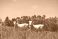 • White Cattle Grazing Peacefully in Lush Green Pasture