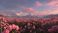 • Expansive field of pink roses in full bloom with majestic snow-capped mountains and colorful sky at sunset, creating a stunning natural landscape