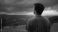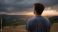 • A man contemplates a dramatic landscape under a cloudy colorful sky at dusk