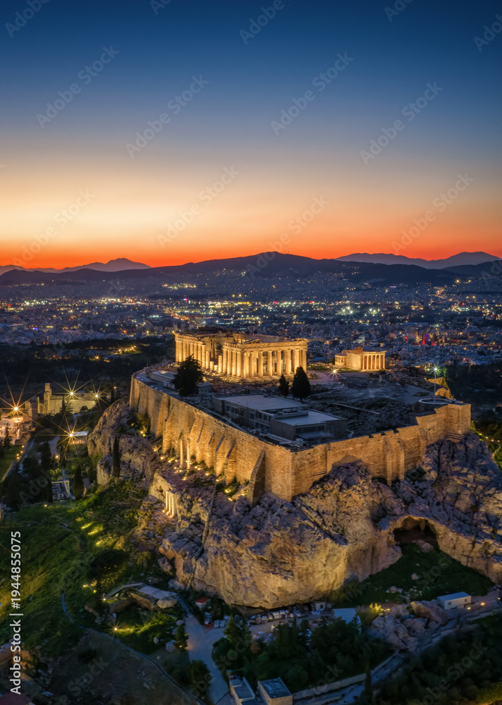 Obraz Pejzaże - Aerial view of the illuminated Parthenon Temple at the Acropolis of Athens, Greece, during... #1944855075