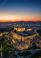 • Aerial view of the illuminated Parthenon Temple at the Acropolis of Athens, Greece, during evening time