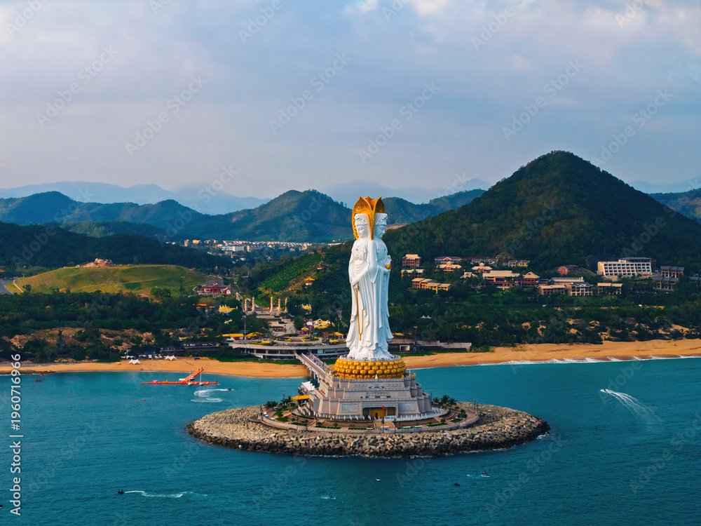 Obraz Pejzaże - Aerial view of statue GuanYin at seaside in Nanshan buddhism center of Sanya, Hainan island China #1960716966