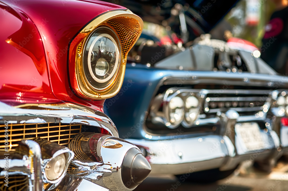 Obraz Pojazdy - Vintage American cars on exhibition at summer cruise-in. #1104409447
