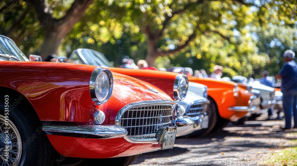 Obraz Pojazdy - Classic cars on display at a spring festival in a scenic outdoor park #1195315003