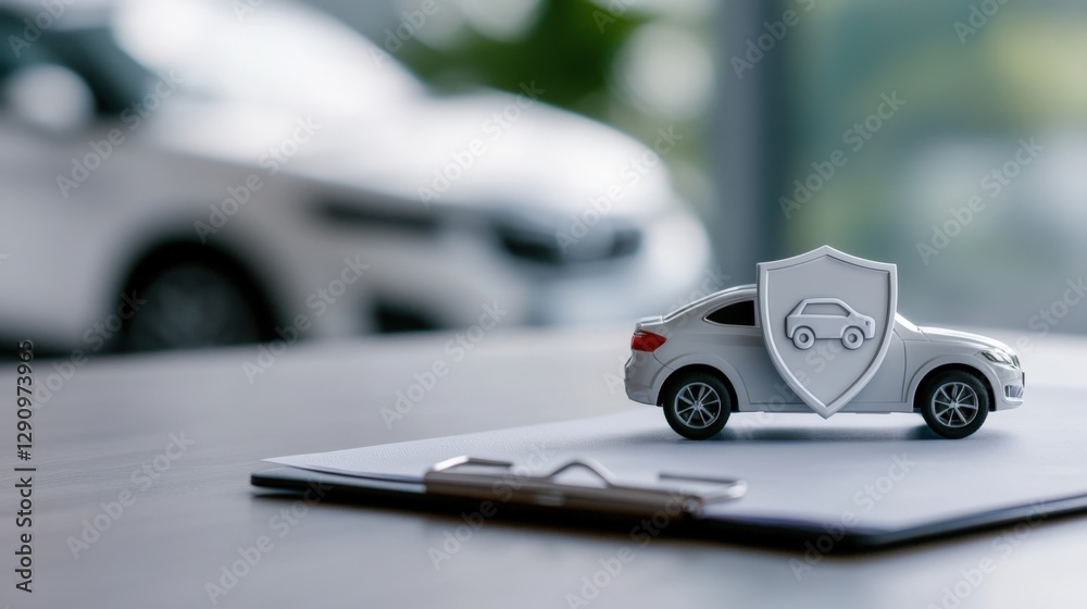 Obraz Pojazdy - Car insurance concept with toy car and shield. #1290973965
