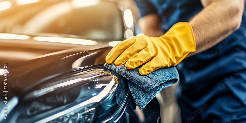 • Car Detailing: A Man Perfectly Wiping a Clean Vehicle