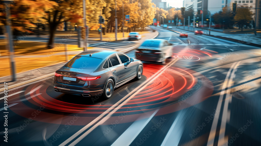 • modern car, automatic braking, collision avoidance, advanced driver assistance, ADAS, emergency brake, car safety system, autonomous braking, driver alert, vehicle technology, smart car, intelligent v