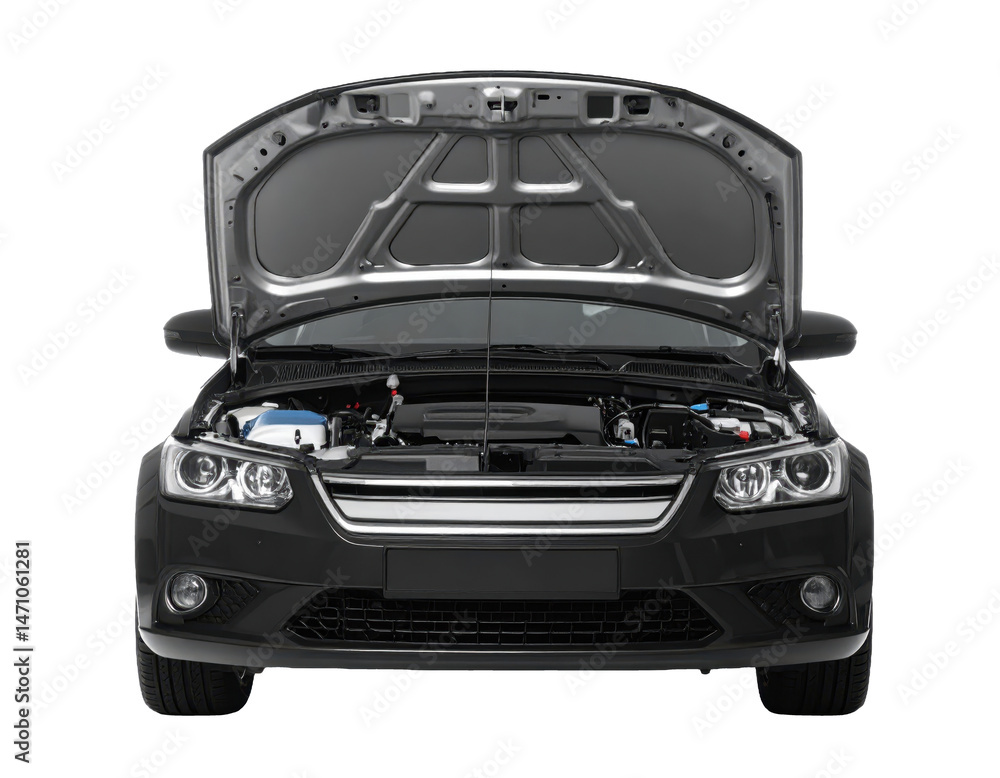 Obraz Pojazdy - open car hood showing engine bay on white background png #1471061281