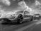 Obraz Pojazdy - Futuristic sports cars with glowing digital wireframes racing on highway under dramatic cloudy... #1529153795