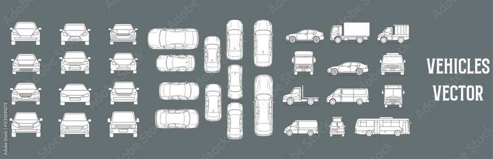 Obraz Pojazdy - Vehicle elevation vector flat illustration collection ideal for architectural design #1530691678