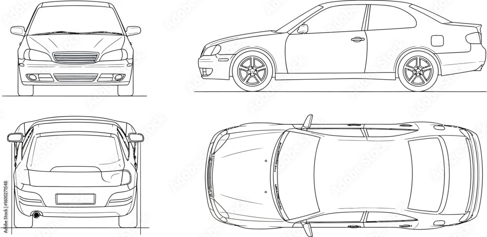 Obraz Pojazdy - Detailed car blueprint showing front, side, rear, and top views perfect for engineering... #1600271548