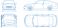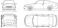 • Detailed car blueprint showing front, side, rear, and top views perfect for engineering presentations and automotive design projects