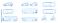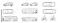 • Minimalist outline vector illustration of vehicles including cars, buses, and bicycles in CAD style outline drawing with top and side views for transportation and city planning design