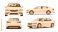 • Set of vector illustrations showing a modern sedan car from multiple angles, emphasizing elegant design, business style, and reliable automotive concept for branding, marketing, and transportation