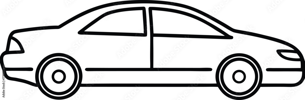 Obraz Pojazdy - Simple Black and White Line Drawing of a Sedan Car #1799924018