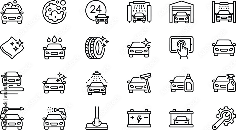 Obraz Pojazdy - Car wash service icons set, auto detailing illustration collection, vehicle cleaning symbols, car... #1838403316