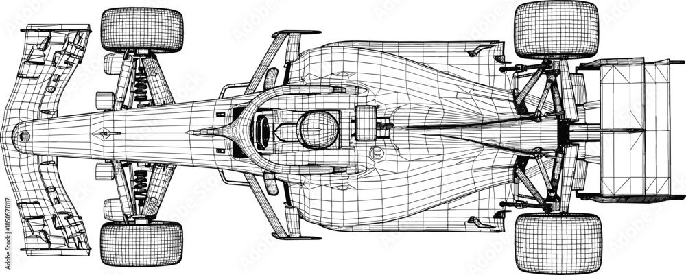 Obraz Pojazdy - Top view 3D wireframe mesh model of a professional racing car for automotive engineering and... #1850578117