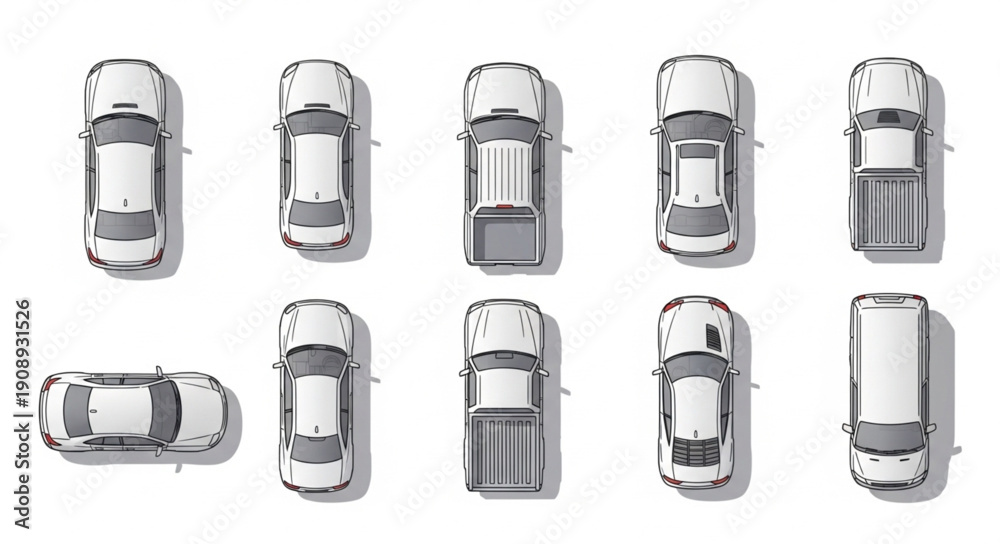 Obraz Pojazdy - Top View Collection of Various Cars and Trucks. #1908931526