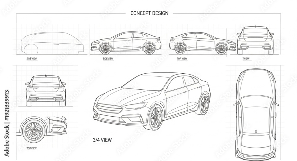 Obraz Pojazdy - Car Blueprint Technical Drawing Illustration. #1921339913