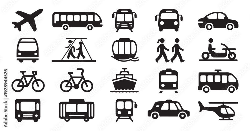 Obraz Pojazdy - Transportation icon set featuring various modes of travel including public transit car plane boat... #1928944526