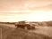 Obraz Pojazdy - classic car in the field road at sunset #557957112