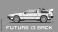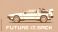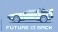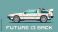 • Retro futuristic car against muted turquoise background with text "FUTURE IS BACK". Cyberpunk concept. Synthwave poster. Retro future wallpaper. Vector illustration. EPS 10.