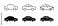 • Car icon set. Simple and detailed auto symbol in different styles. Automobile vector illustration. Vehicle sign. Sedan silhouette. Black car graphic design concept.