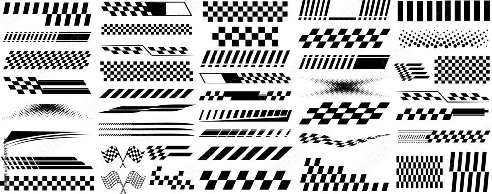 • racing stripe vector set, race car vector, checkered flag designs, racing stripe speed, decal patterns, dynamic lines, competition, automotive graphics, black and white finish line motorsport