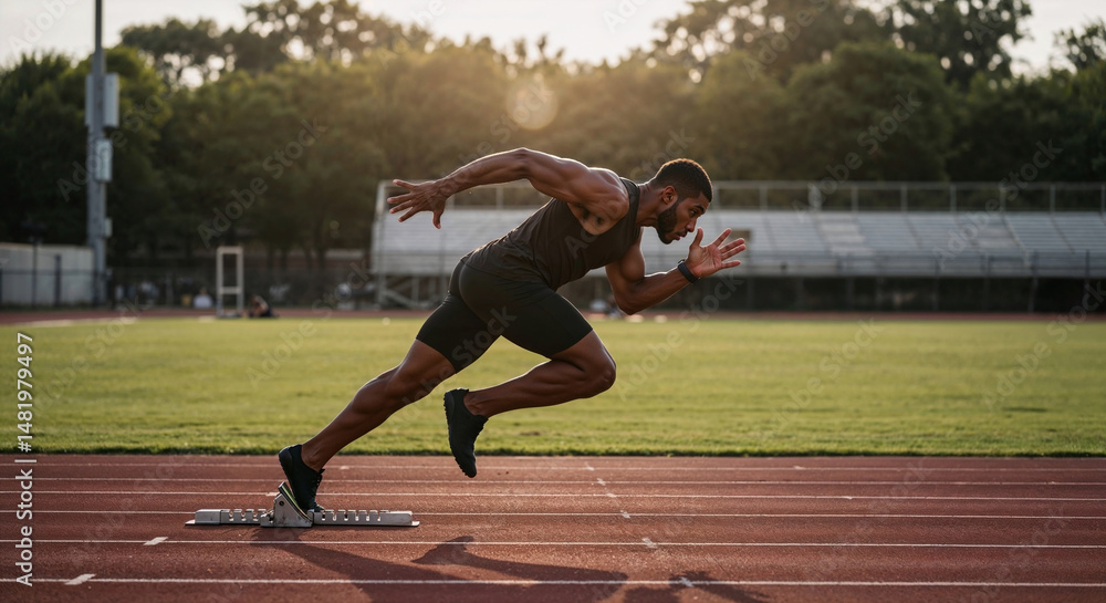 Obraz Sport - African American sprinter performing high intensity circuit training on outdoor racetrack... #1481979497