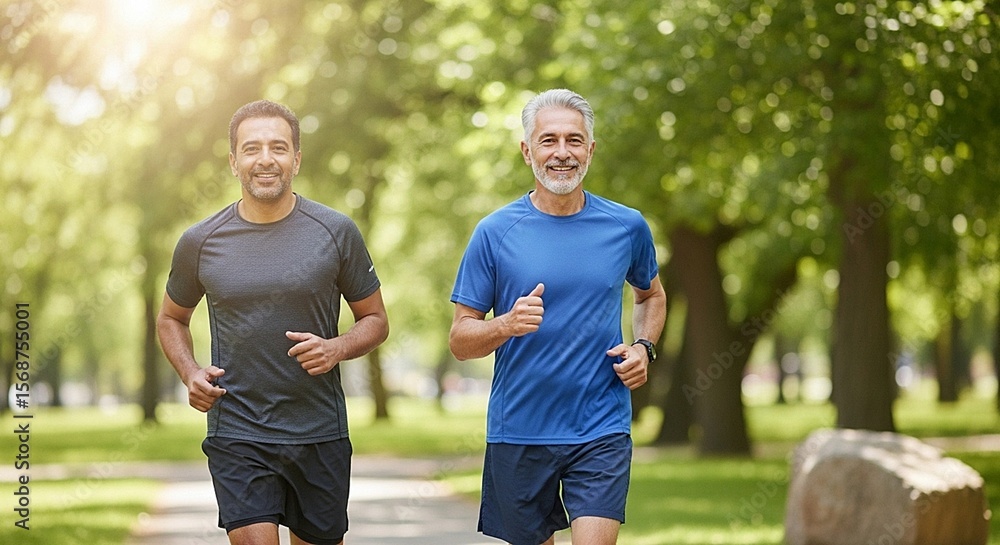 Obraz Sport - Two Happy Men of Different Ages Running in a Park #1568755001