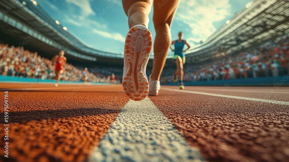 Obraz Sport - Running tracks with athletes sprinting in mid-stride, intense focus and determination, stadium... #1597509784