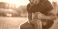 • A man in sportswear clutches his knee in pain on a field during sunset, suggesting a sports injury or physical discomfort.