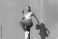 • Fit woman exercising outdoors, raising leg and jumping, doing functional training outside on bright sunny day, wearing sport outfit