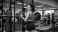 • Confident athletic woman in sportswear looking back over her shoulder while standing at a barbell squat rack in a modern, well-lit gym