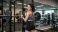 Obraz Sport - Confident athletic woman in sportswear looking back over her shoulder while standing at a barbell... #1636353860