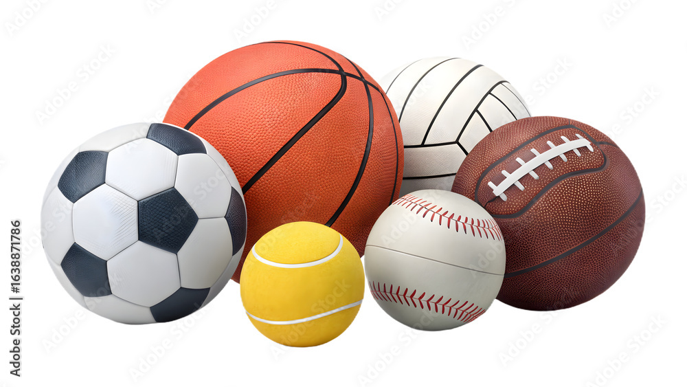 Obraz Sport - Diverse sports balls PNG set isolated, ideal for design projects. #1638871786
